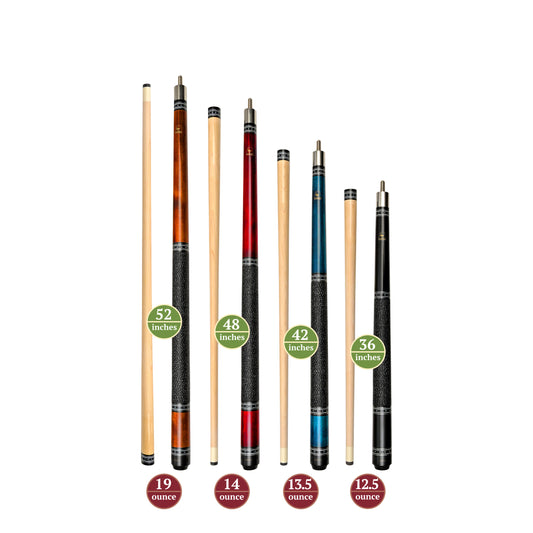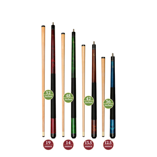 Set of Aska Mixed Length Cues LS, Canadian Hard Rock Maple Billiard Pool Cue Sticks, Short, Kids Cues, LS4N