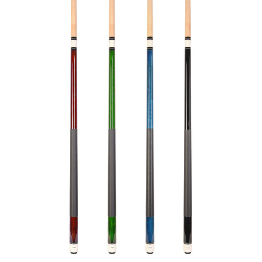 ASKA Set of 4 Pool Cue Sticks 58", 2-Piece Construction, 5/16x18 Joint, Hard Rock Canadian Maple, 13mm Hard Glued On Tip, Mixed Weights and Colors, L7S4