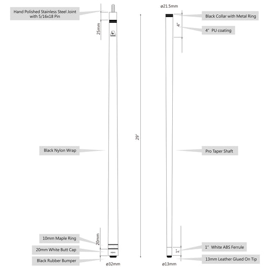 Lot of 6 ASKA Set of 5 Pool Cue Sticks L25, 58" Assembled, 2-Piece Construction, 5/16x18 Joint, Hard Rock Canadian Maple, L25S5BOX