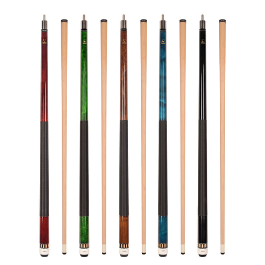 ASKA Set of 5 Pool Cue Sticks 58", 2-Piece Construction, 5/16x18 Joint, Hard Rock Canadian Maple, 13mm Hard Glued On Tip, Mixed Weights and Colors, L7S5