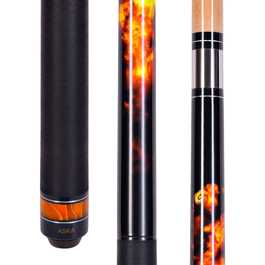 ASKA Jump Break Cue Stick JBCFB2 Fireball, 3-Piece Construction, Jump/Break Cue. 13mm Tip, Hard Rock Canadian Maple