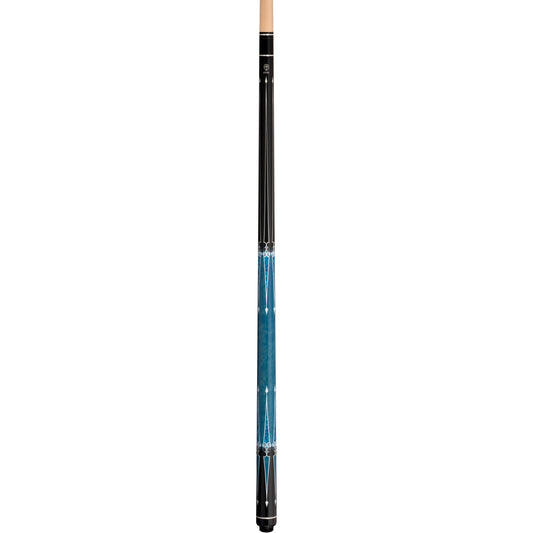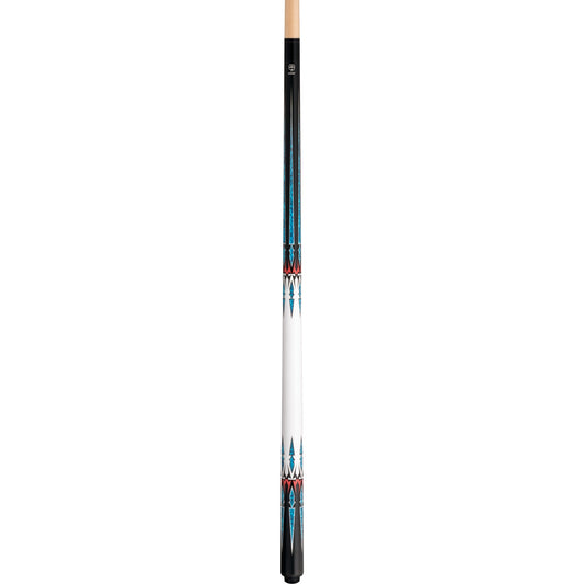 Lucky L78 Pool Cue – Black with Blue & White Graphic Design, Wrapless Handle, Hard Rock Maple, 3/8x10 Joint