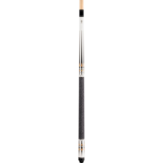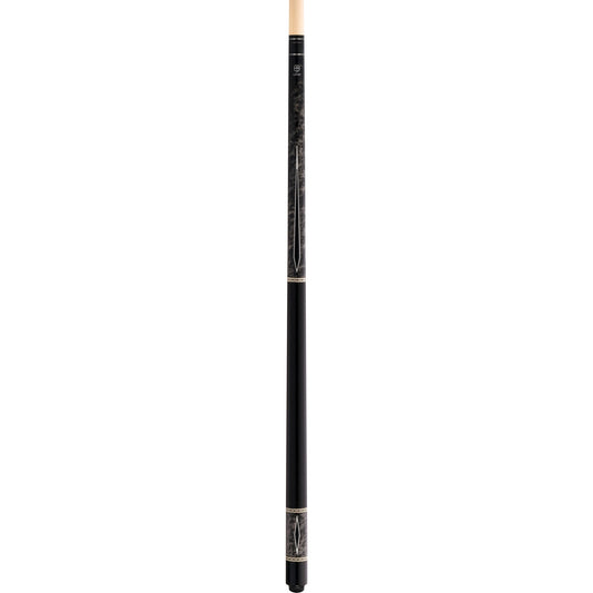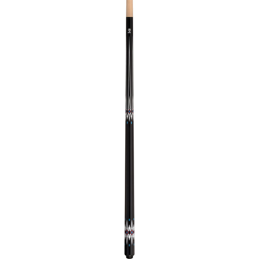 Lucky L22 Pool Cue – Black with Overlay Points Design, Irish Linen Wrap, Silver Rings, 3/8x10 Joint