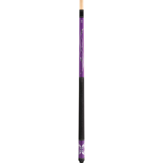 Lucky L59 Pool Cue – Purple with Metallic Overlay Graphics, Irish Linen Wrap, Silver Rings, 3/8x10 Joint