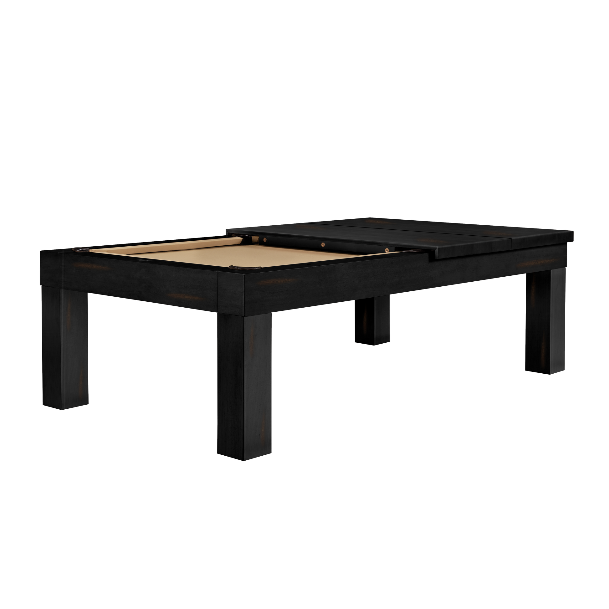 Convert your Alta pool table into a functional dining table, pop-up classroom, working from home conference table, or buffet style hosting. Designed to fit 8’ Alta pool tables, this top comes in 4 leaves held in place by magnets. Pair with the American Heritage Billiards Dining & Table Top Conversion Valet for easy, convenient storage. This conversion top has felt supports on the bottom to prevent damage to the pool table playing surface. Seat up to 8-10 people for dinner with this practical conversion top. Available in Brushed Walnut, Peppercorn, Charcoal, and Black Ash finishes.