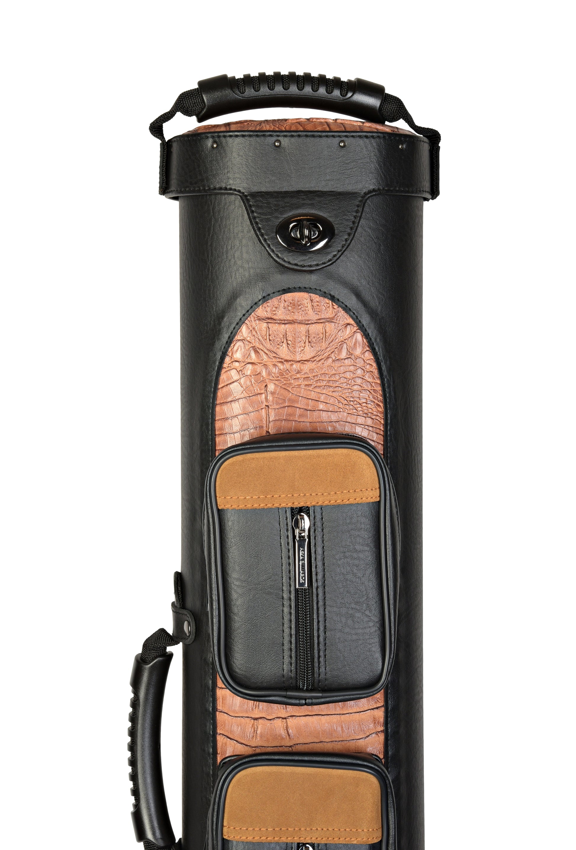 - Black/Brown 4x8 Oval Pool Cue Case, Type 4B8S, Hard Tubes with Soft Felt. Case Has Adjustable Shoulder Strap