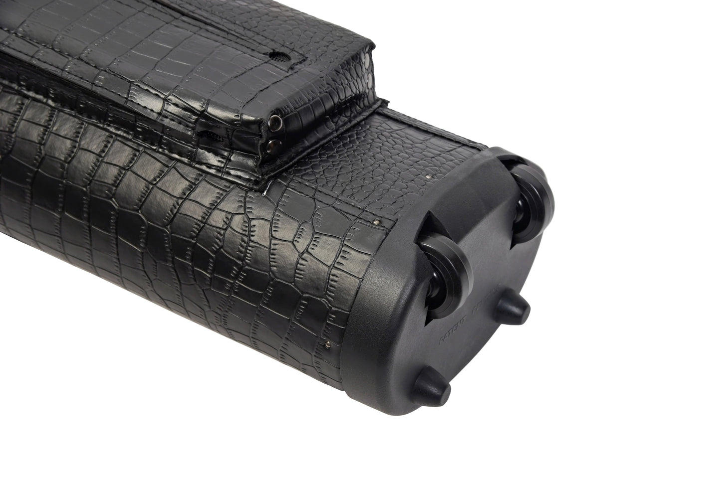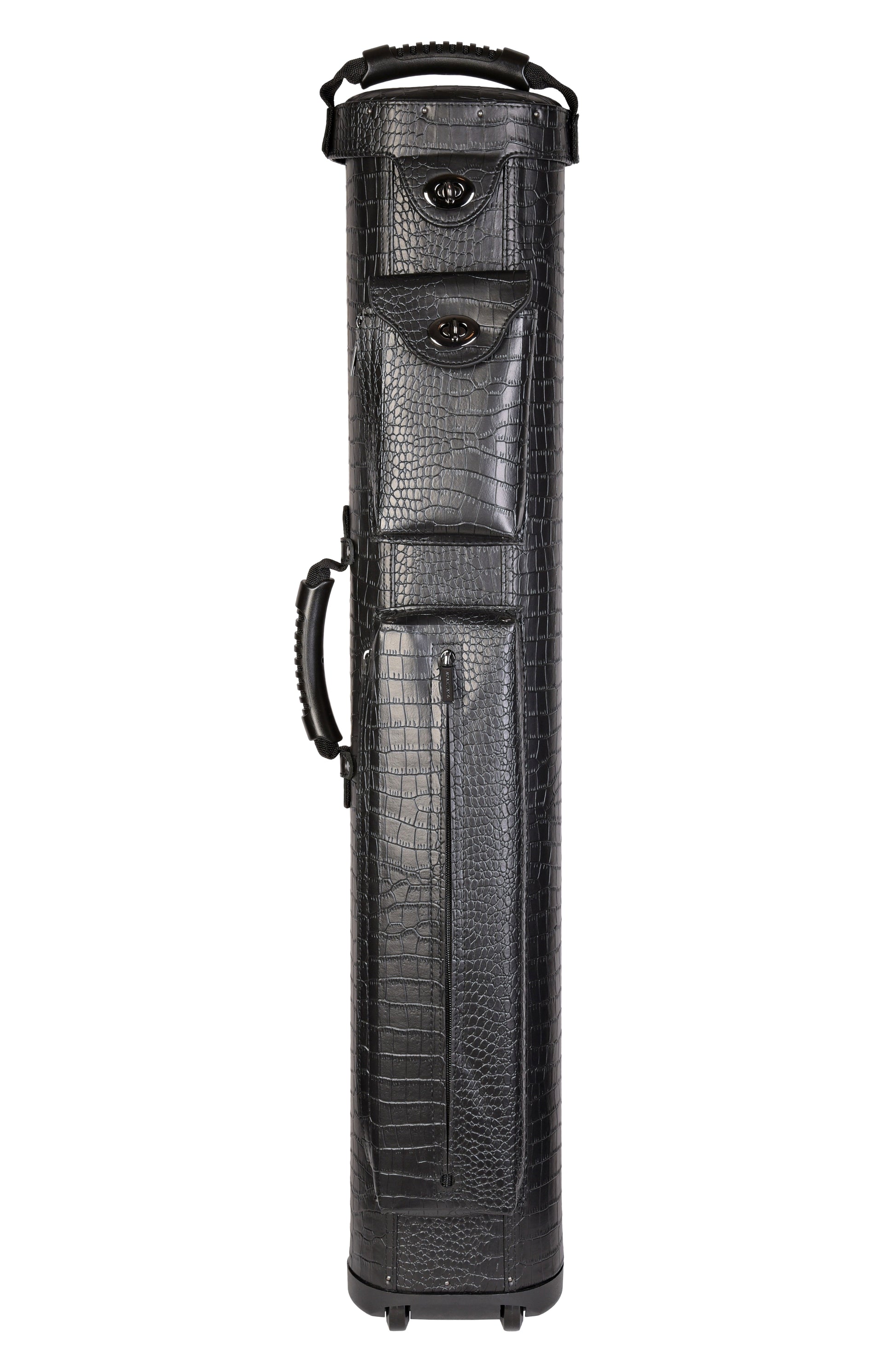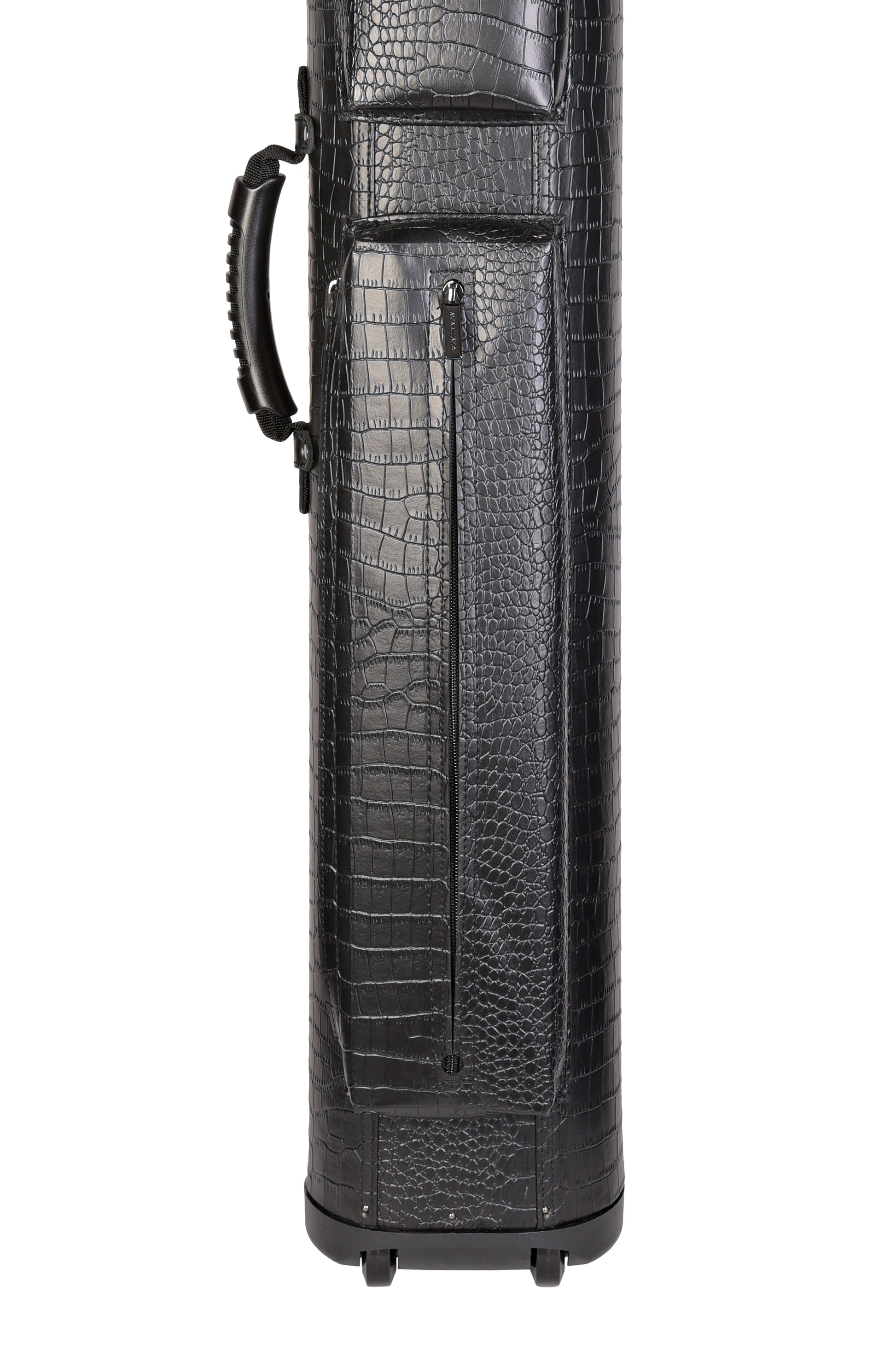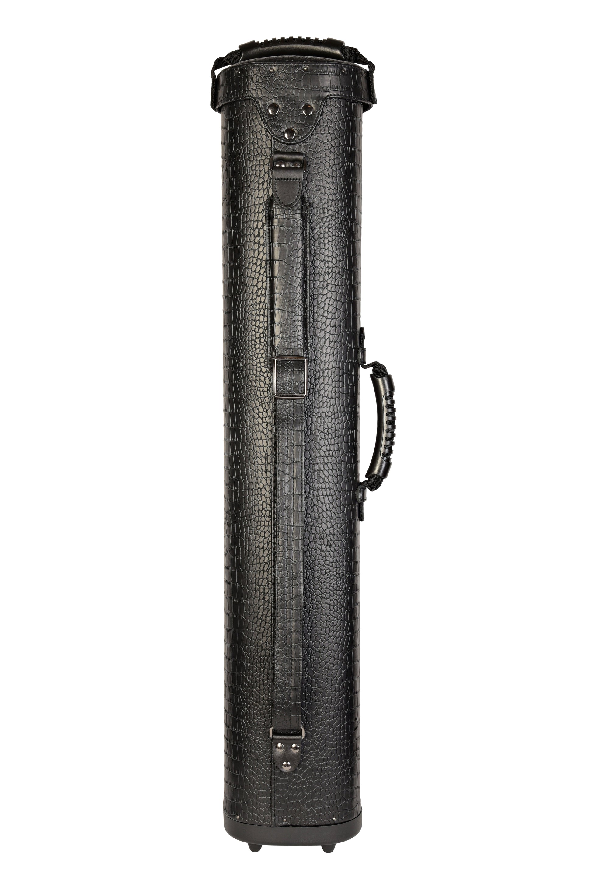 - With Wheels. Black Design, Oval Cue Case, Type 4x8 4B8S, Hard Foamed Tubes with Soft Felt.