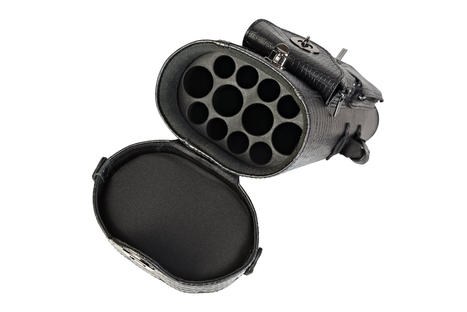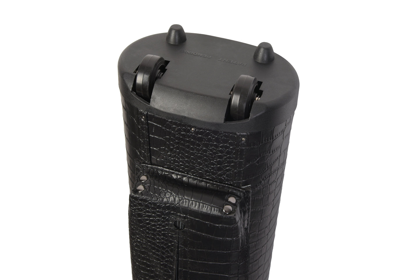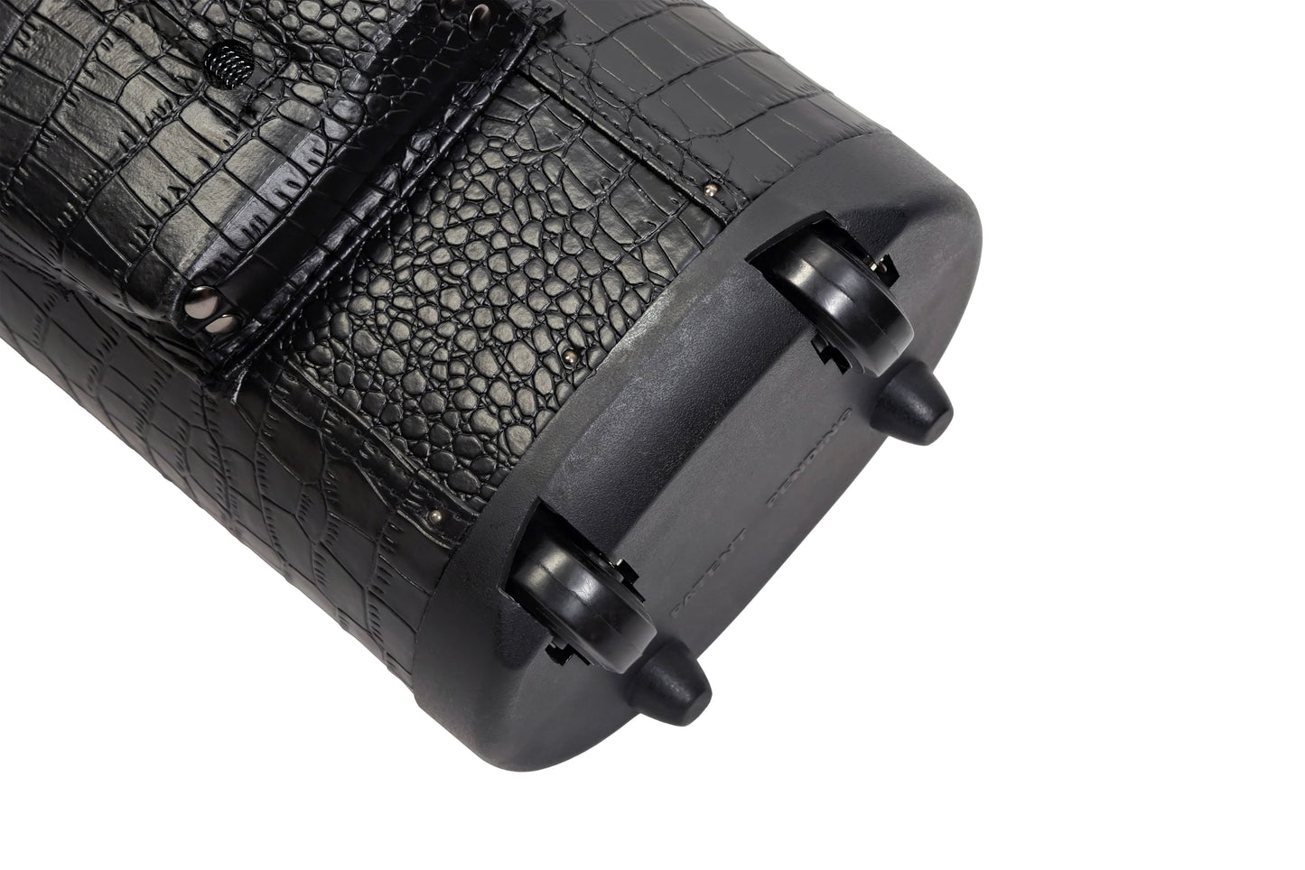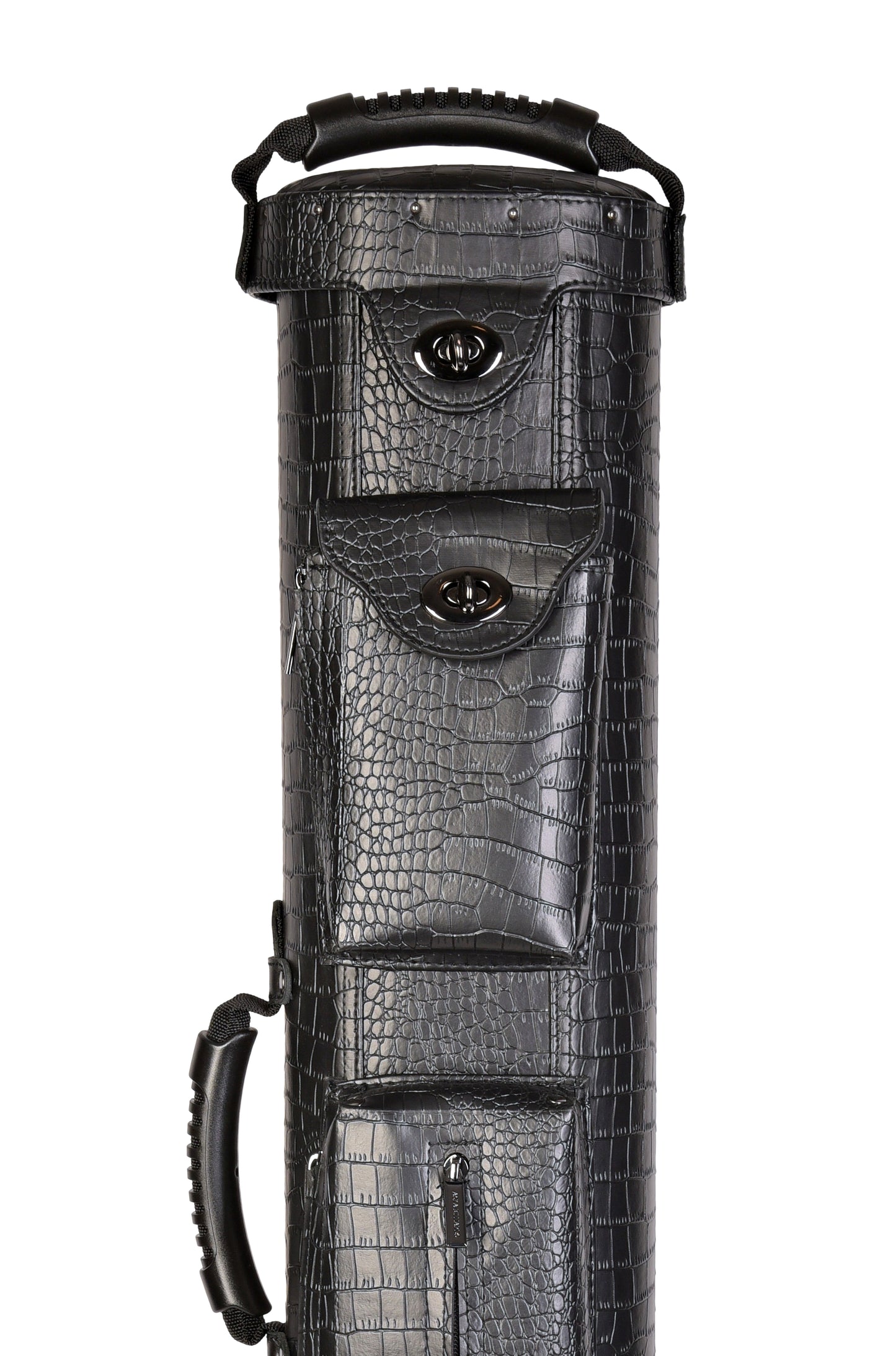 - With Wheels. Black Design, Oval Cue Case, Type 4x8 4B8S, Hard Foamed Tubes with Soft Felt.