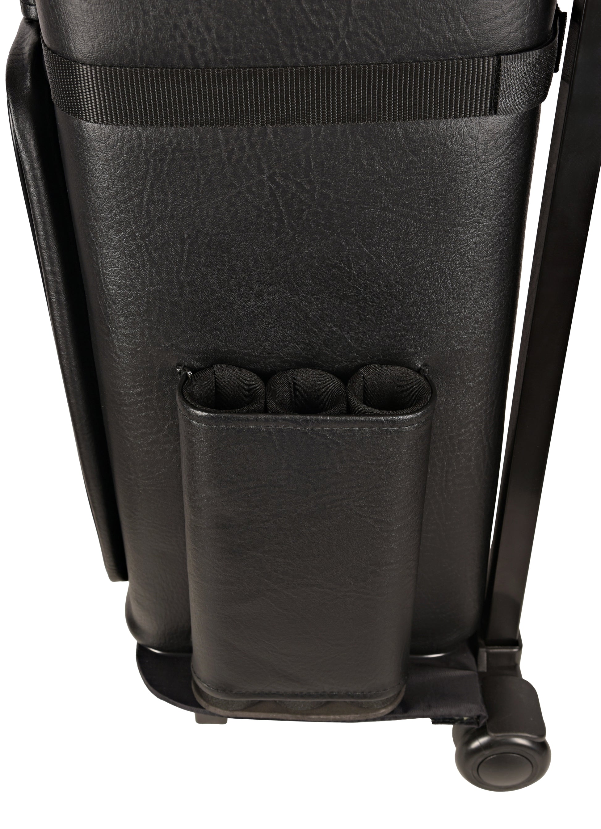 - 5 accessory pockets 2 legs, 2 wheels