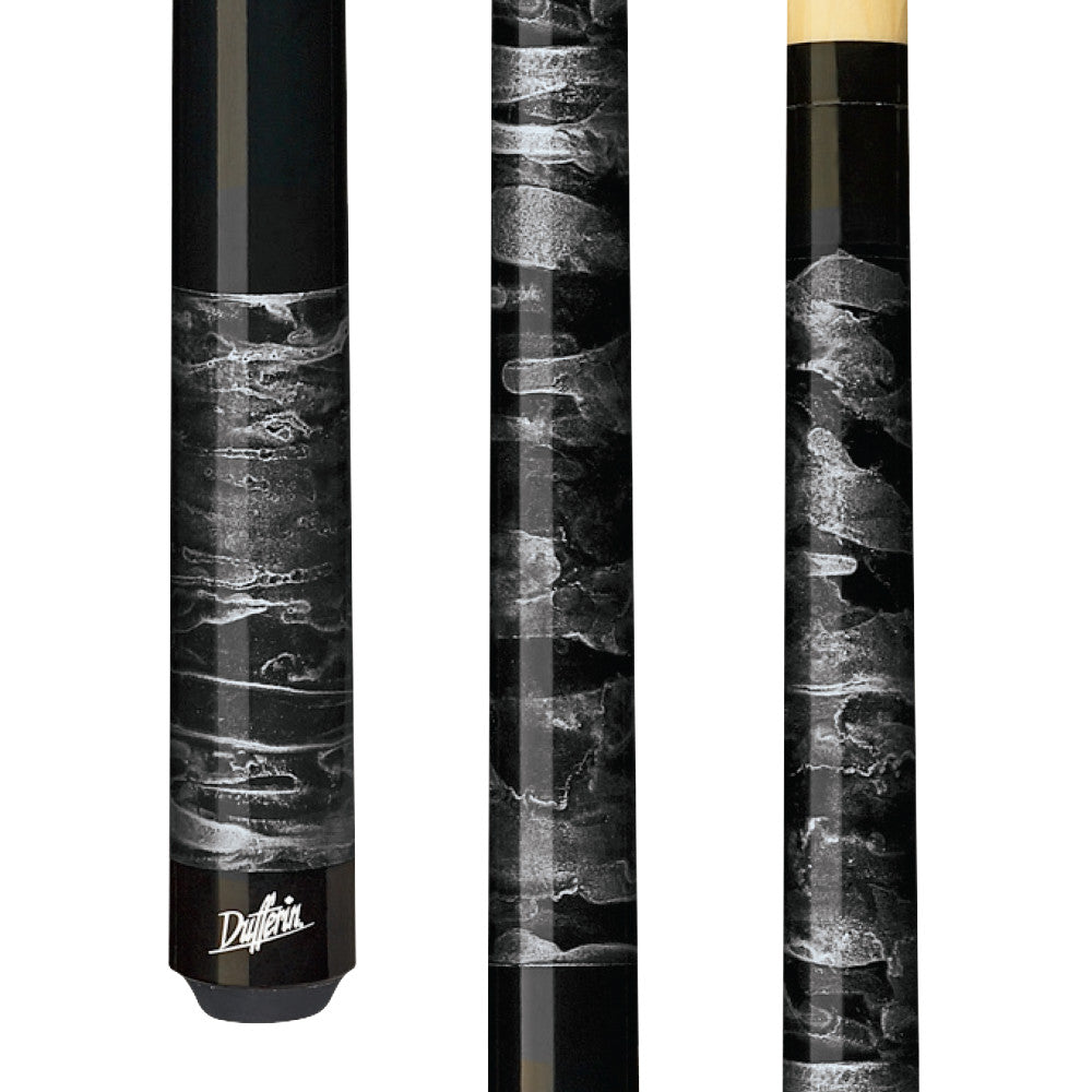 This timeless Dufferin cue features a marbled black & silver Canadian Hard Rock Maple forearm and butt, sleek wrapless handle and Blue Elf tip.