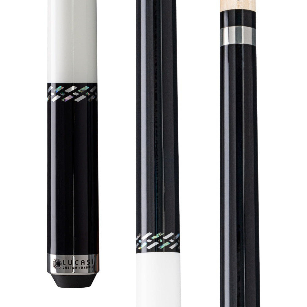 Introducing the Lucasi LUX71 Pool Cue featuring a sleek midnight black finish accented with a custom Mother-Of-Pearl & silver ring design. The white wrapless handle offers a clean and comfortable grip. The 11.75mm Uni-loc?? Lucasi?? Zero Flex Slim 10-Piece Radial Shaft with Kamui Pro tip delivers precision in every shot. Only 100 of these beautifully crafted cues were made, so don't miss your chance to be one of the first to own this exclusive cue.