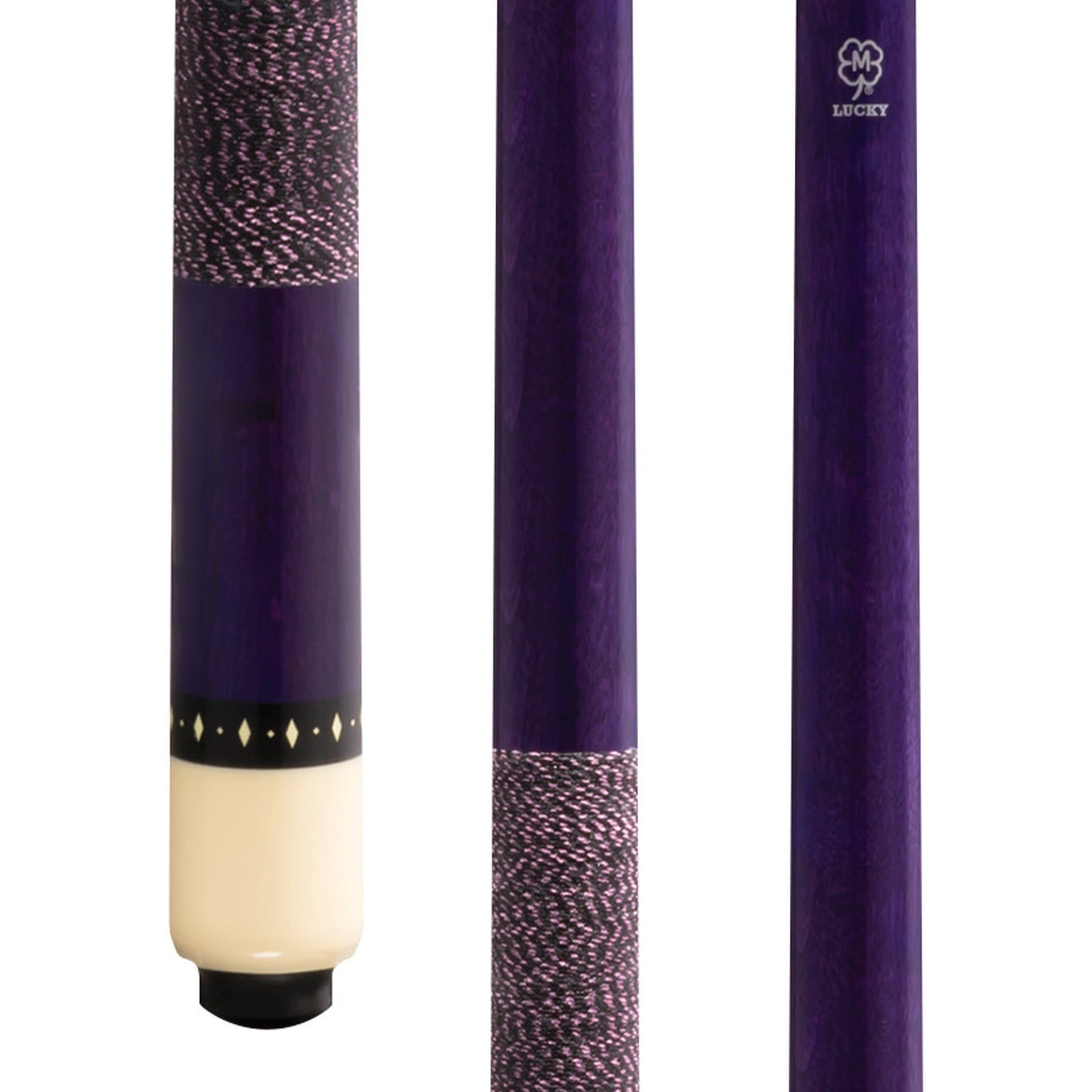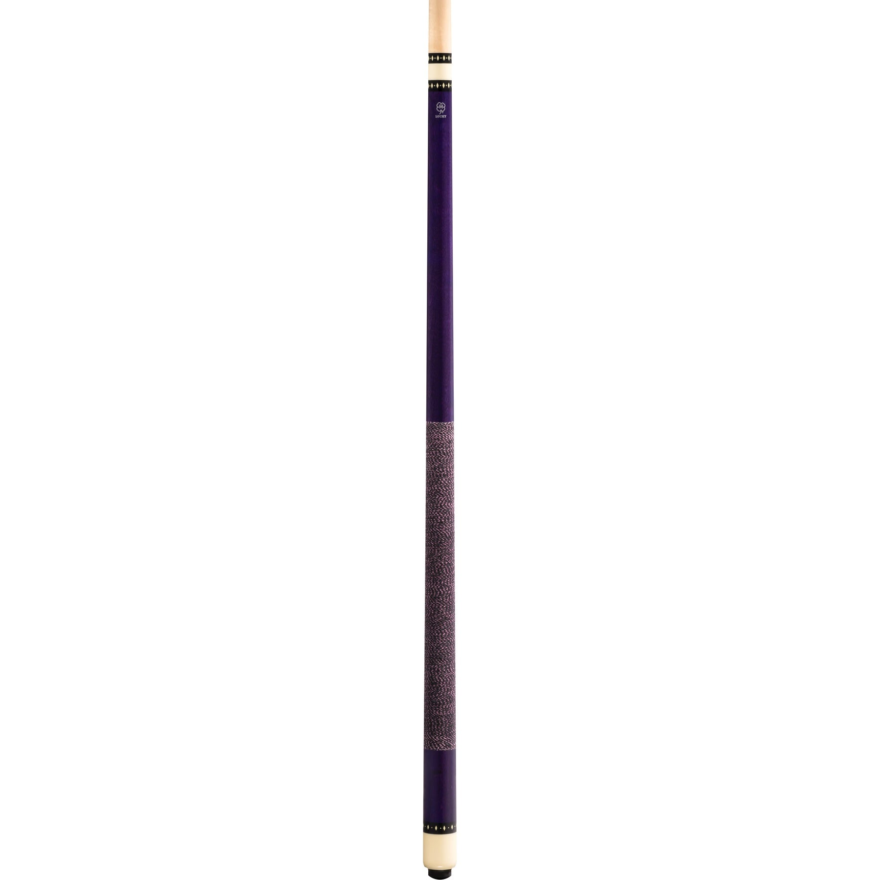 Lucky L71 Pool Cue – Purple Stain Maple, Irish Linen Wrap, Overlay Index Rings, 3/8x10 Joint