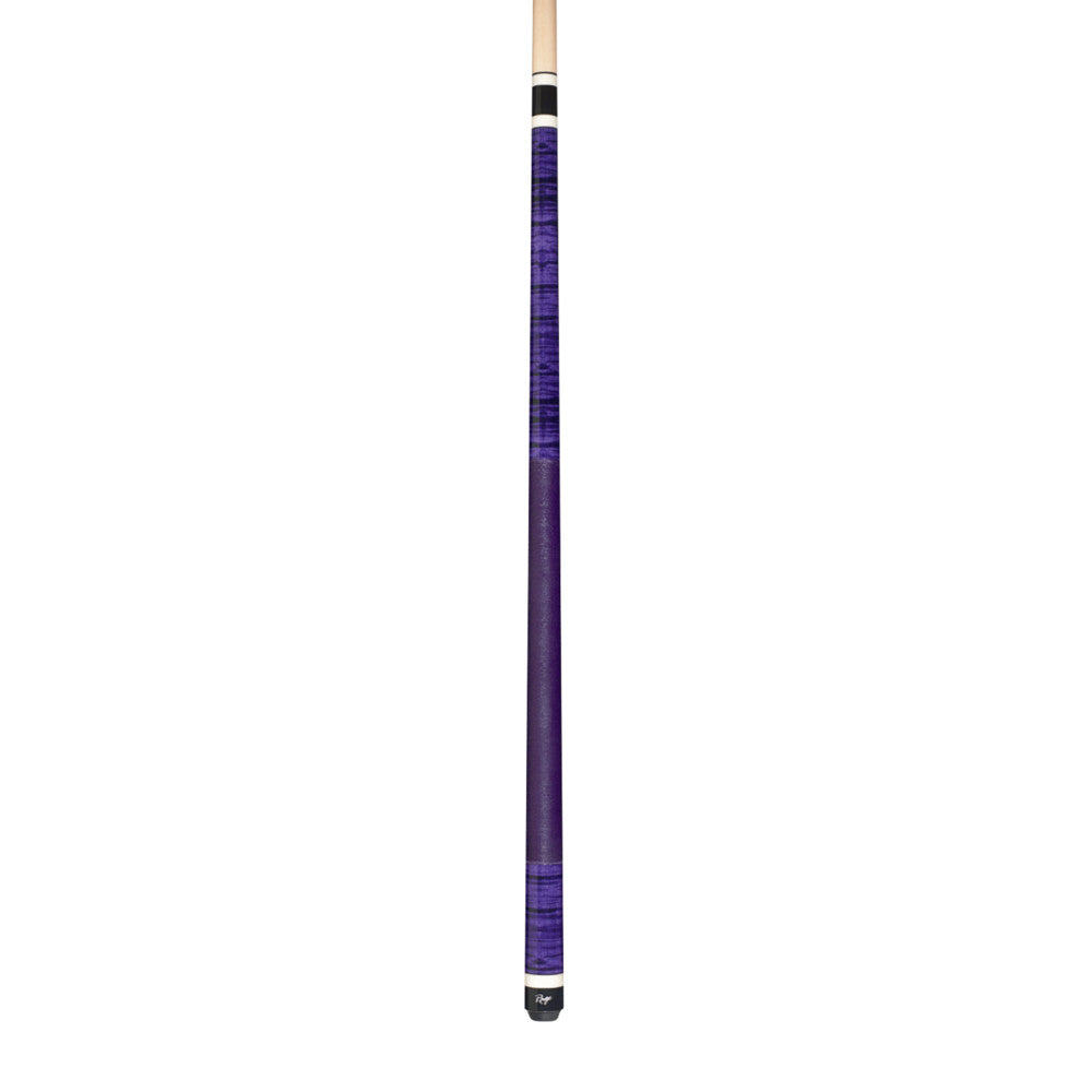 This modern traditional Rage cue features 100% Hard Rock Maple construction with graphic purple reign tiger striped design, Implex joint and solid purple pressed nylon wrap.