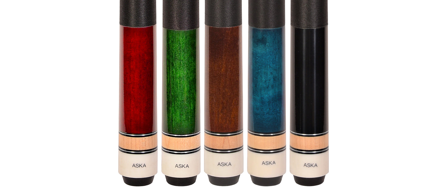 Set of 5 Aska L2 Billiard Pool Cues, 58" Hard Rock Canadian Maple, 13mm Hard Tip, Mixed Weights, L2S5