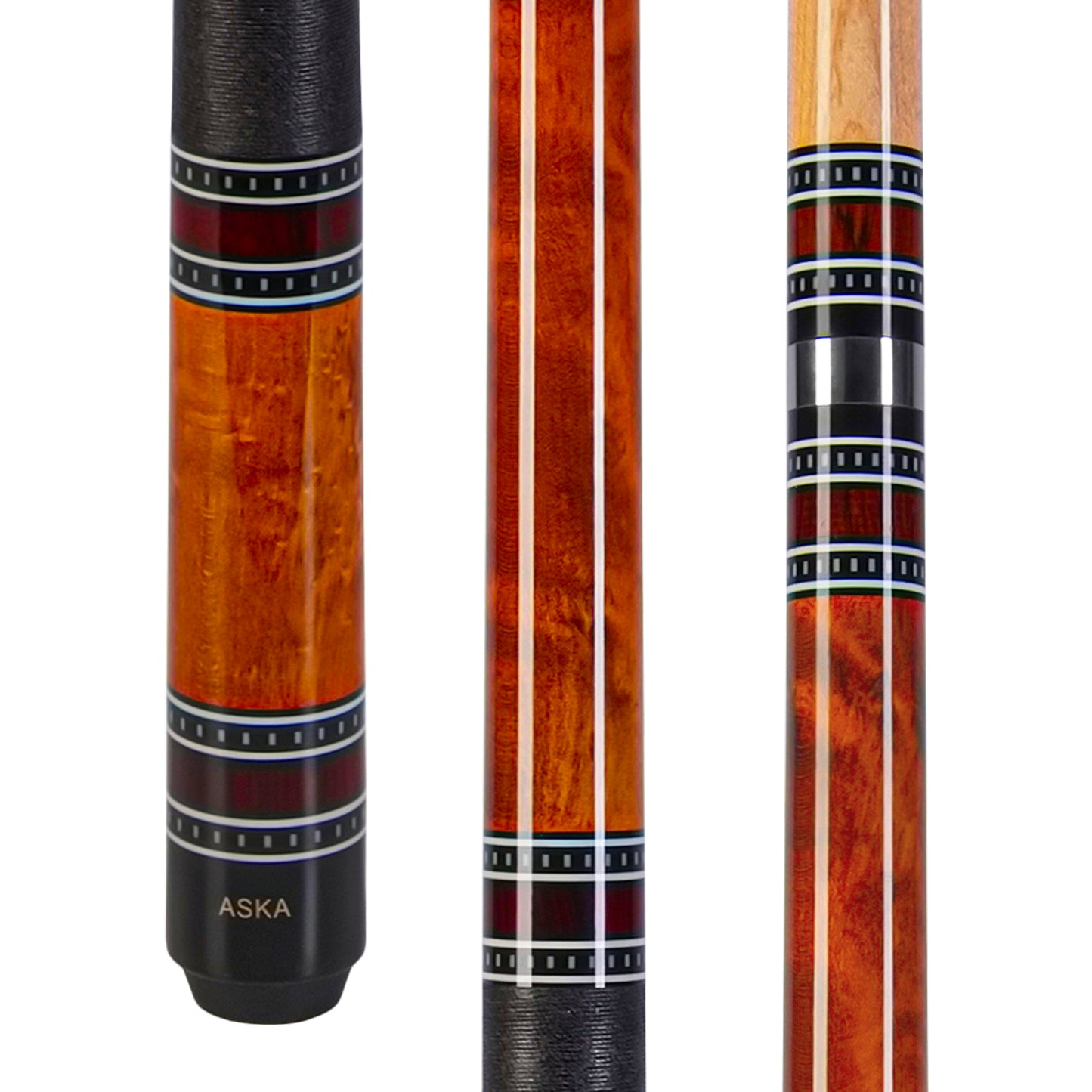 ASKA A1 Pool Cue Stick, Brown Stained Birdseye Maple Butt, Index Rings, Irish Linen Wrap, Quick Release Joint Shaft, 12.75mm Tip, A1BRN
