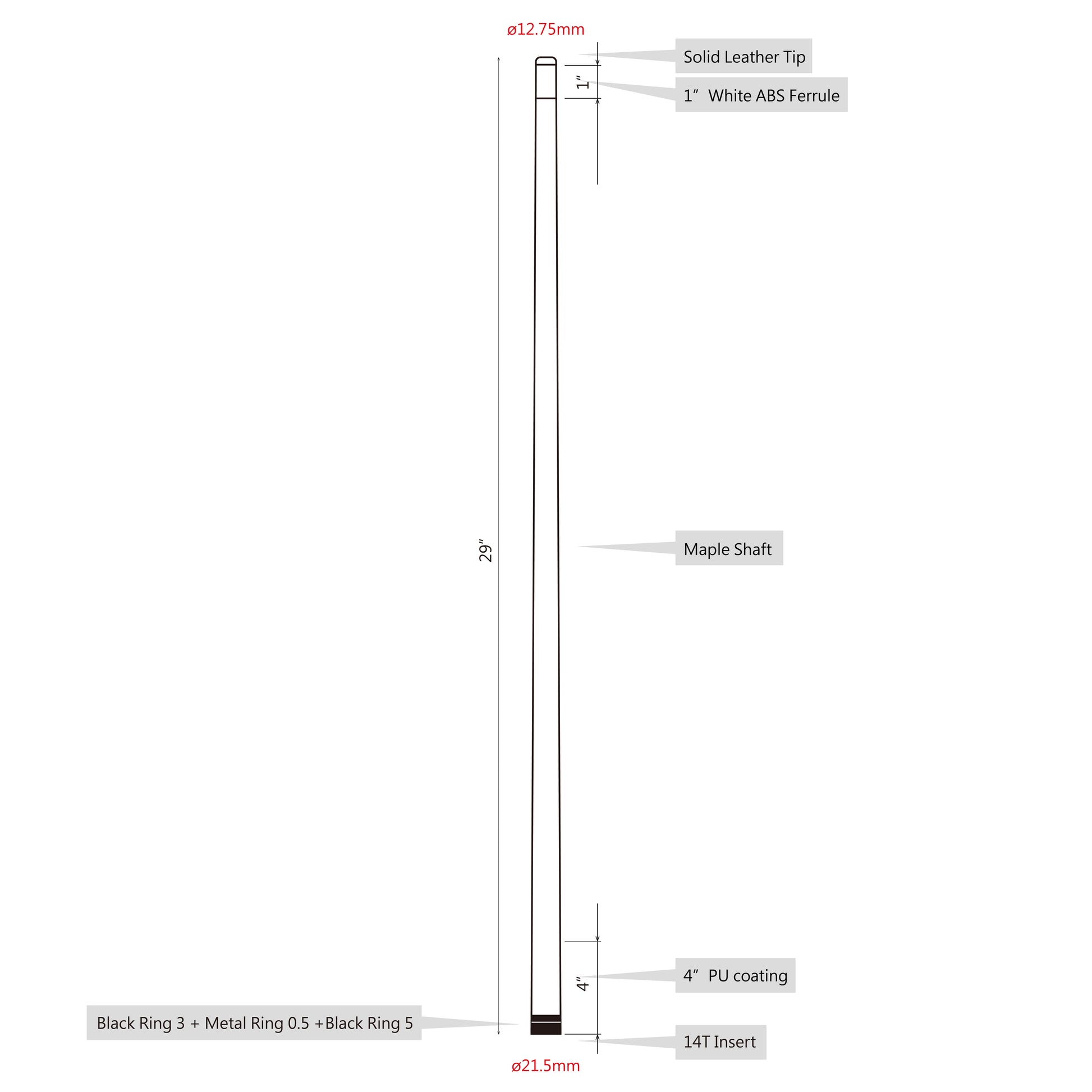 ASKA Extra Spare Shaft 5/16x14 Thread Joint 12.75mm Hard Brown Tip. Canadian Hard Rock Maple, Black Collar with Ring, 29 inches, XS14