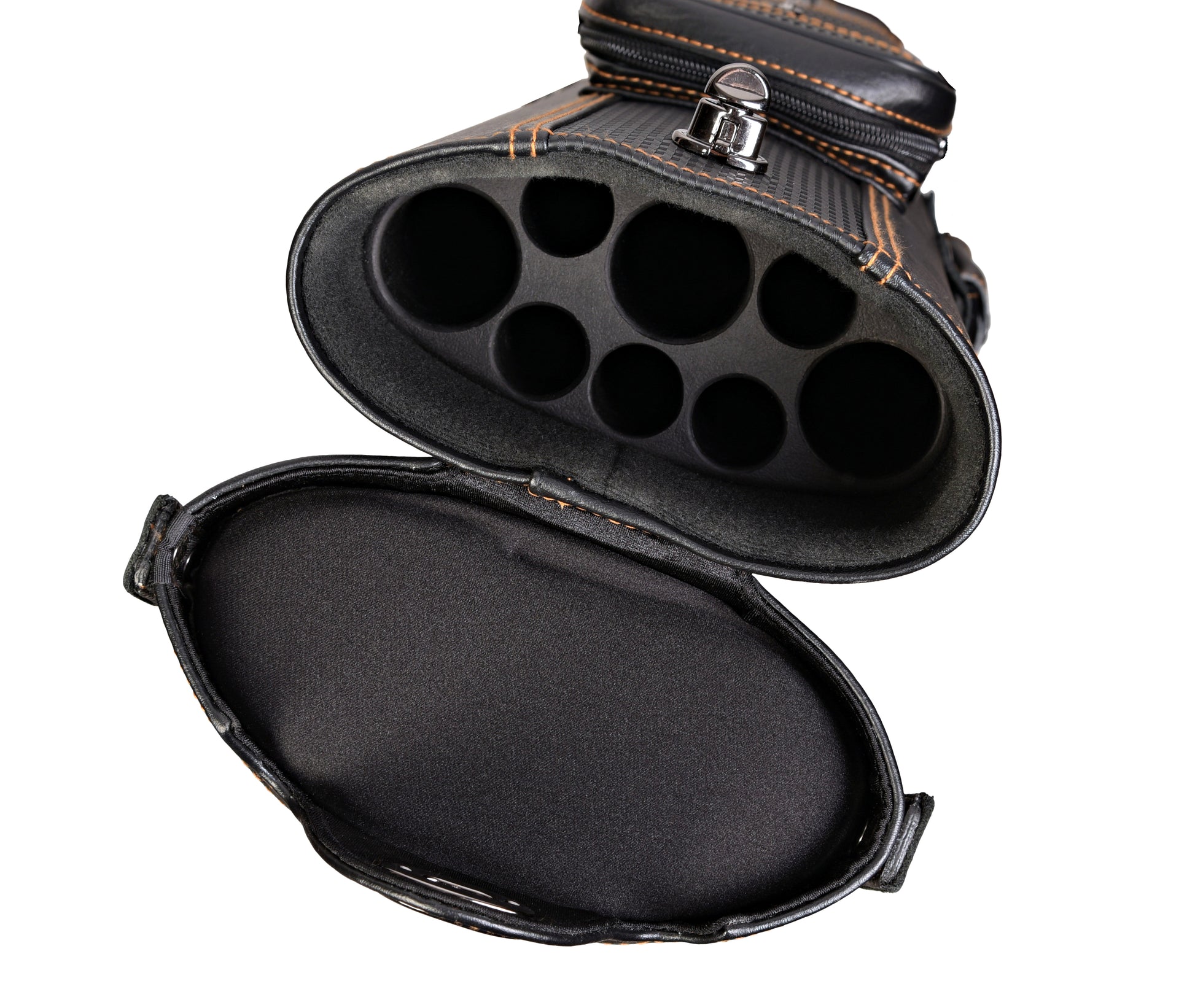 - Long accessory pocket (14"x 4" x 1.5") # Small accessory pocket (5.5" x 4" x 1.5") can hold chalk, tip tools, etc.