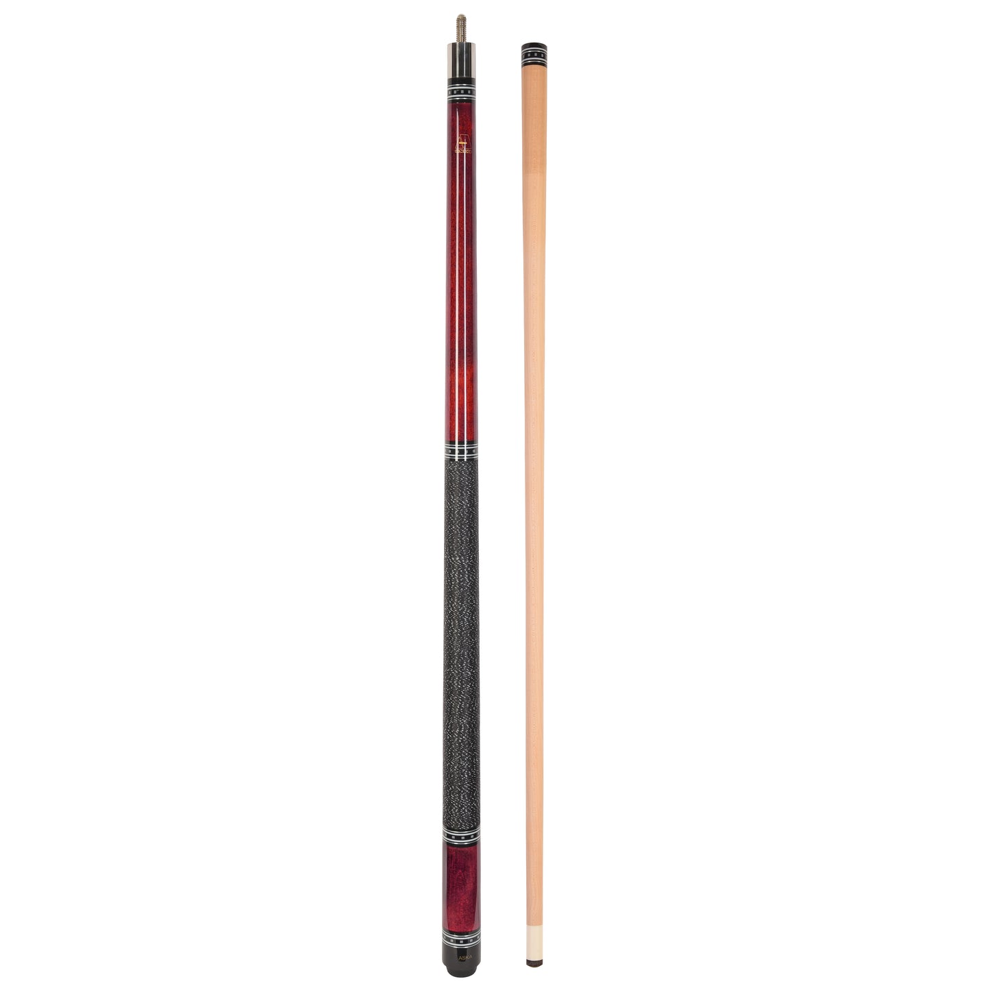 - Stained Maple Cue, 5 Dashed Rings, Hand Polished Stainless Steel 5/16x18 Pin Joint, Hard Rock Maple Shaft with 13mm Hard Tip. Black/White Irish Linen Wrap.