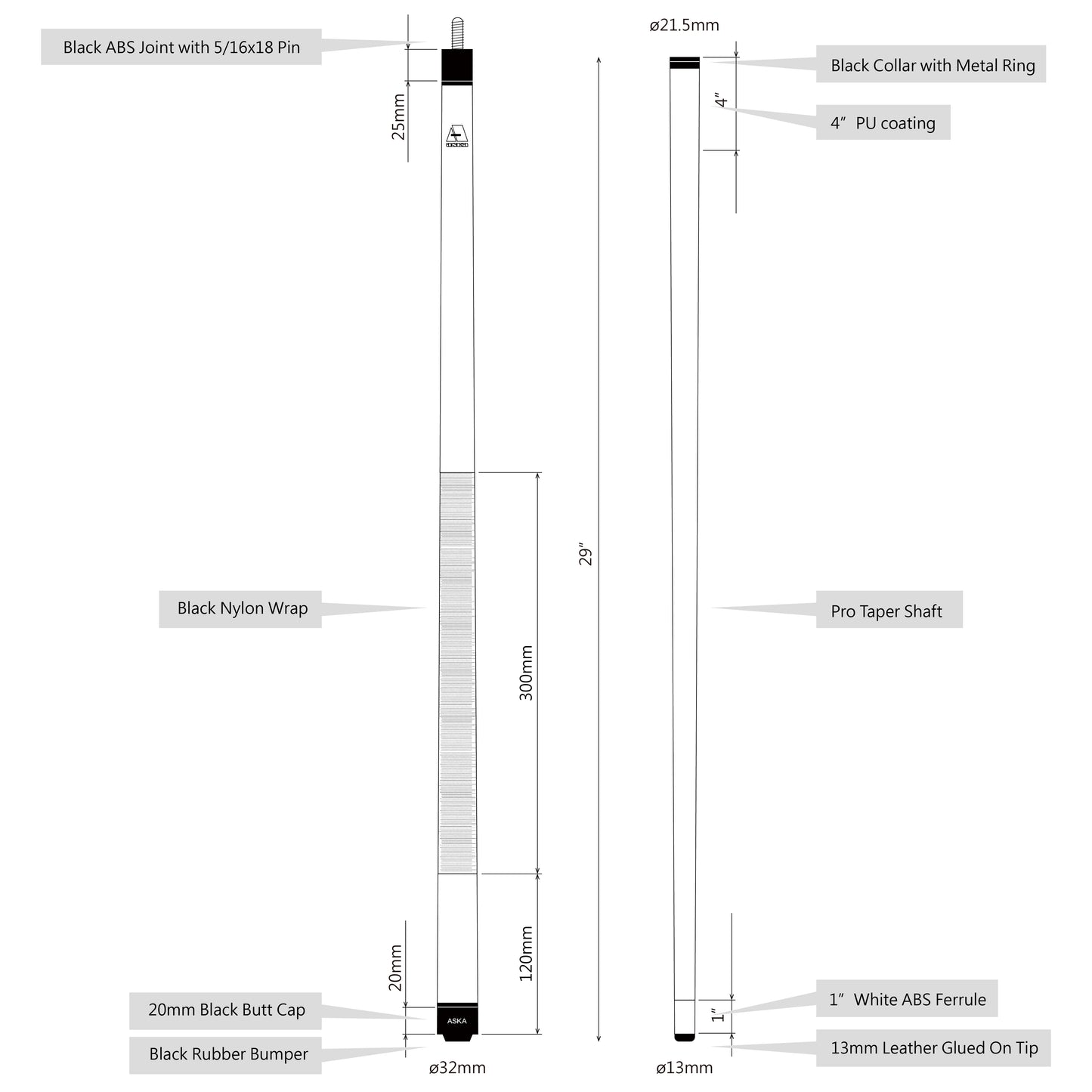 ASKA Pool Cue LEC, 58", 5/16x18 Joint, 13mm Leather Tip, LEC