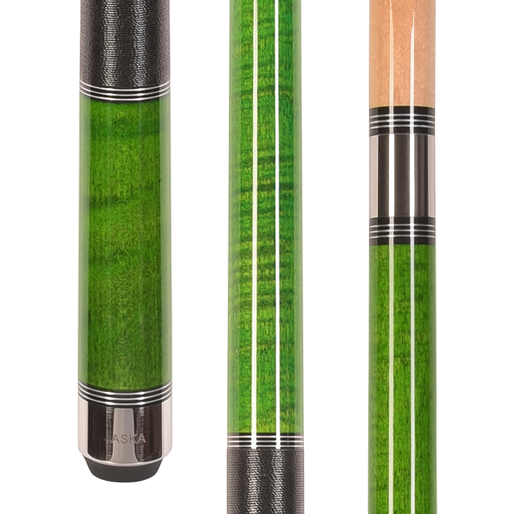 ASKA Pool Cue Stick TR GREEN, Maple Shaft, 5/16x18 Metal Joint, Black Irish Linen, Triple Rings, 12.75mm Tip, TRGRN