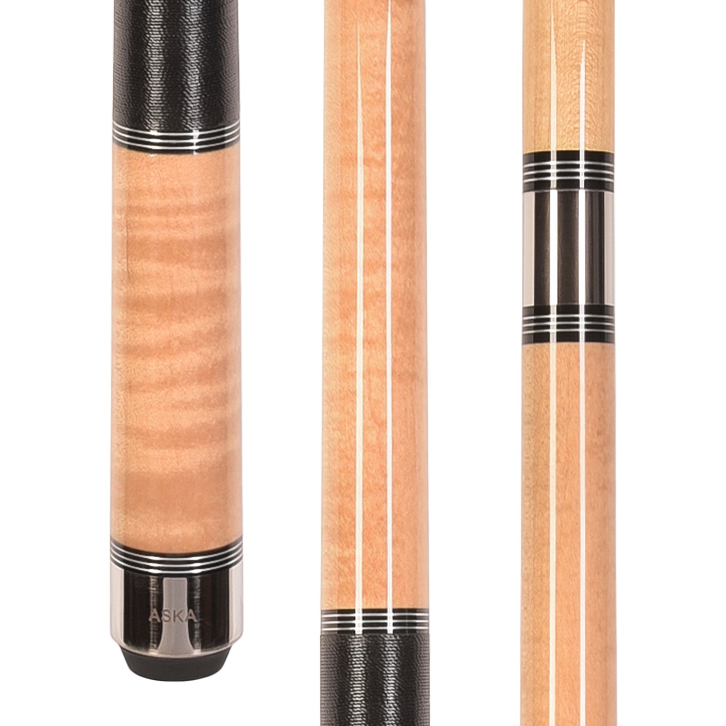 ASKA Pool Cue Stick TR Natural, Maple Shaft, 5/16x18 Metal Joint, Black Irish Linen, Triple Rings, 12.75mm Tip, TRNAT