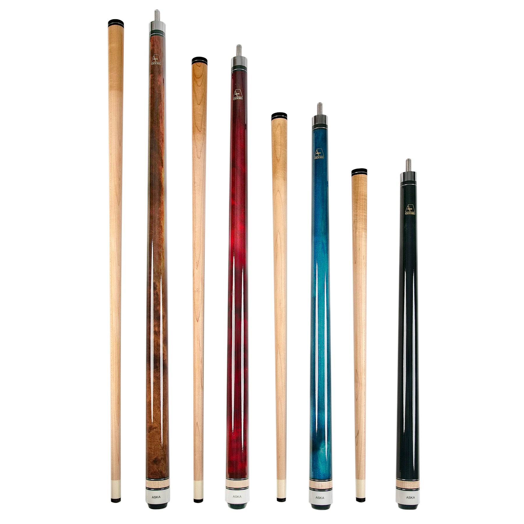 Aska Set of 4 Short Kids Pool Cue Sticks LCSN, Stained Maple, Canadian Hardrock Maple Shaft, 13mm Tip, Mixed Lengths 36",42",48",52", LCSN4