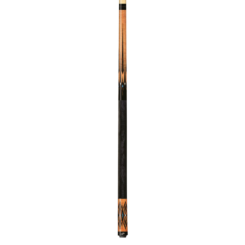 This 2020 Dufferin Special Edition cue features a Canadian Hard Rock Antique stained Maple forearm and sleeve, Black Palm, blue recon, and imitation bone graphic overlay, solid black lizard embossed leather wrap, and Everest tip.