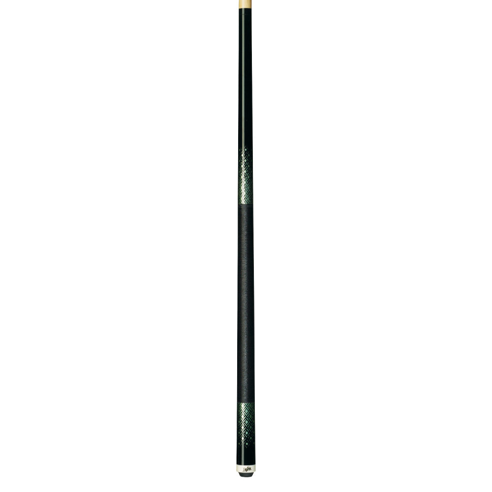 This new Dufferin cue features a black & metallic green diamond patterned Canadian Hard Rock Maple forearm and butt, sleek wrapless handle and Blue Elf tip.