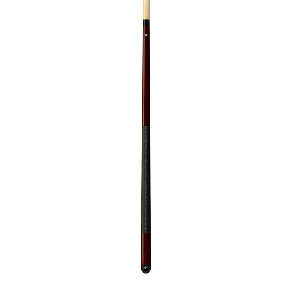 This sleek and simple Dufferin cue features a deep oxblood-stained Canadian Hard Rock Maple forearm and butt with classic silver Maple leaf logo, solid black nylon SL wrap, and Blue Elf tip.