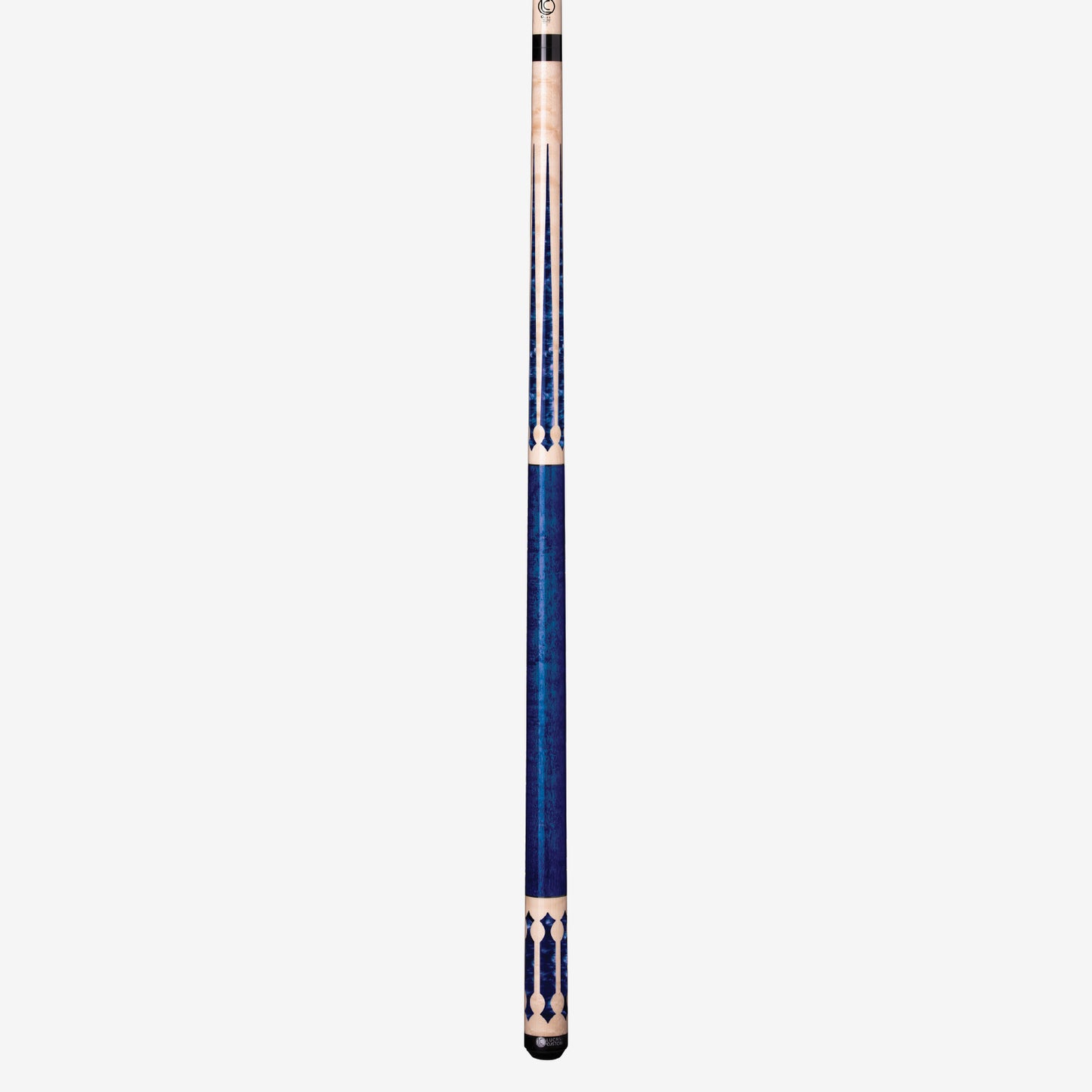 This sleek and simple Lucasi Lux® cue features Natural Birdseye Maple with Blue Luster Inlays and Sleek Blue Stained Birdseye Maple Handle paired with Lucasi 11.75mm Zero Flex Slim Shaft w/ Premium Everest Tip & Uniloc® joint.