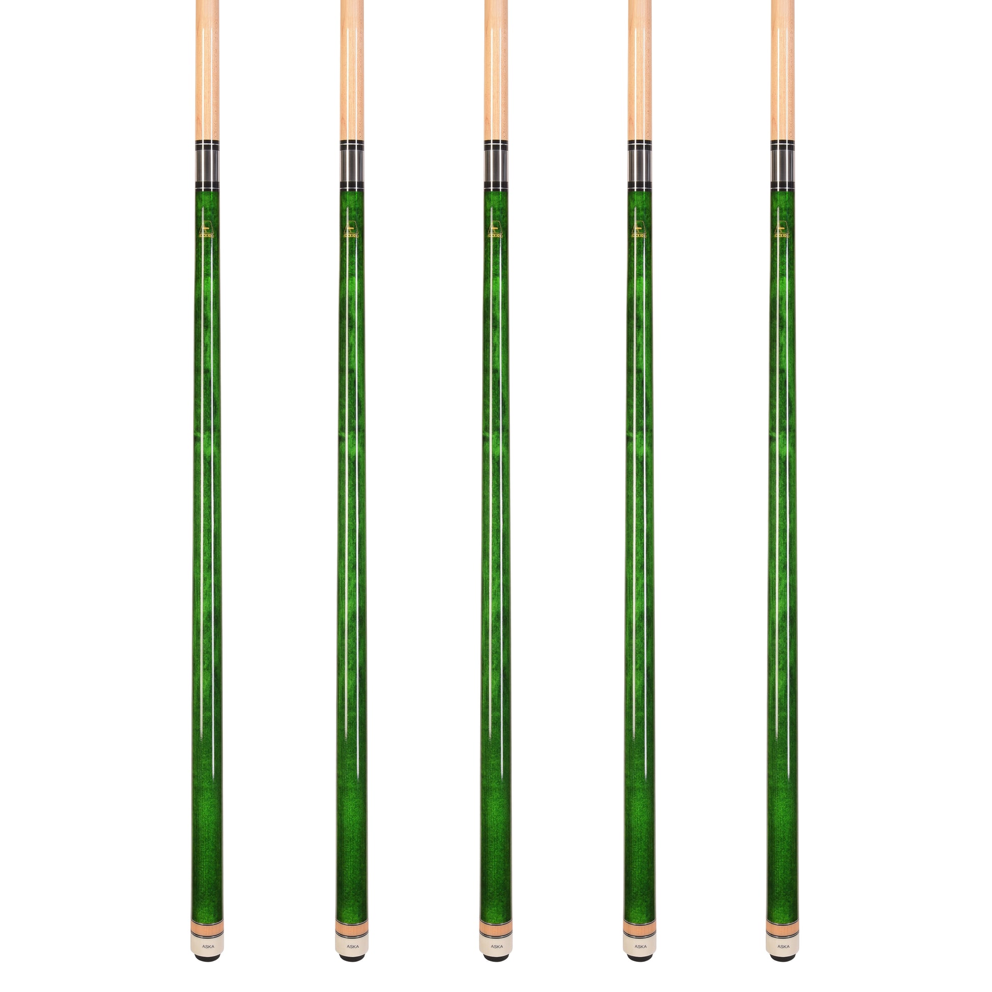 - Wrapless 5(Five) Pool Cue Sticks Set, five sticks all - Green 19-Ounce