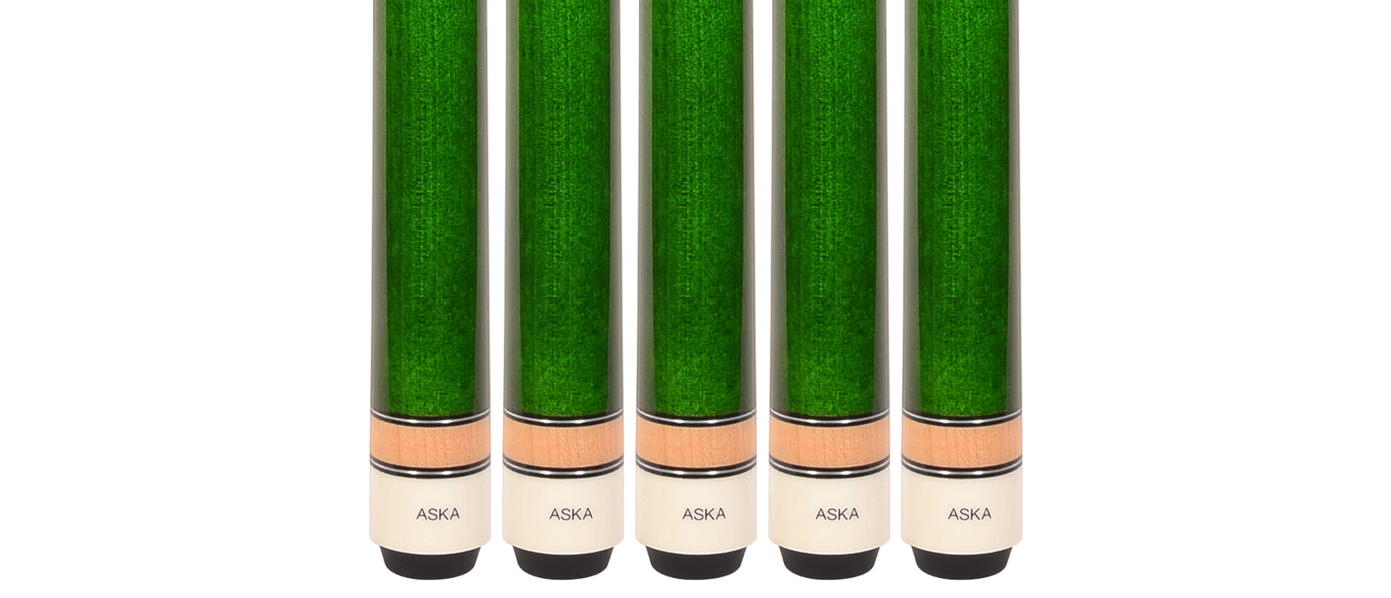 Set of 5 Aska L3 Green Pool Cue Sticks, 58", 13mm Tip, Hard Rock Canadian Maple Shaft, Wrapless, L3S5GRN