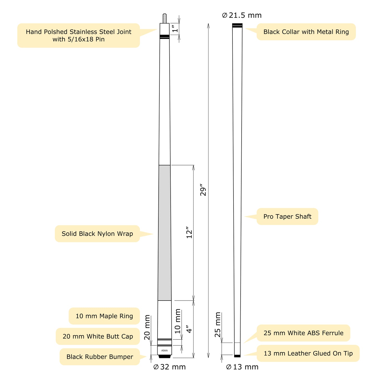- Canadian Hardrock Maple 29" Shaft. Cue Length is 58" (standard pool cue length)