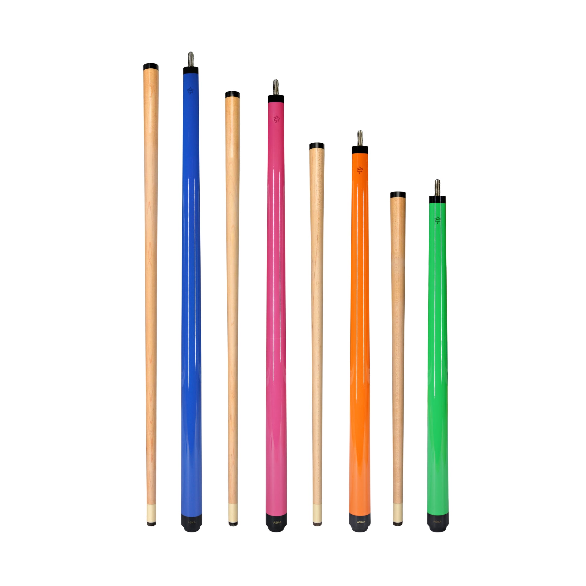 Set of Aska Mixed Length Cues SWP, Canadian Hard Rock Maple Billiard Pool Cue Sticks, Short, Kids Cues, SWP4