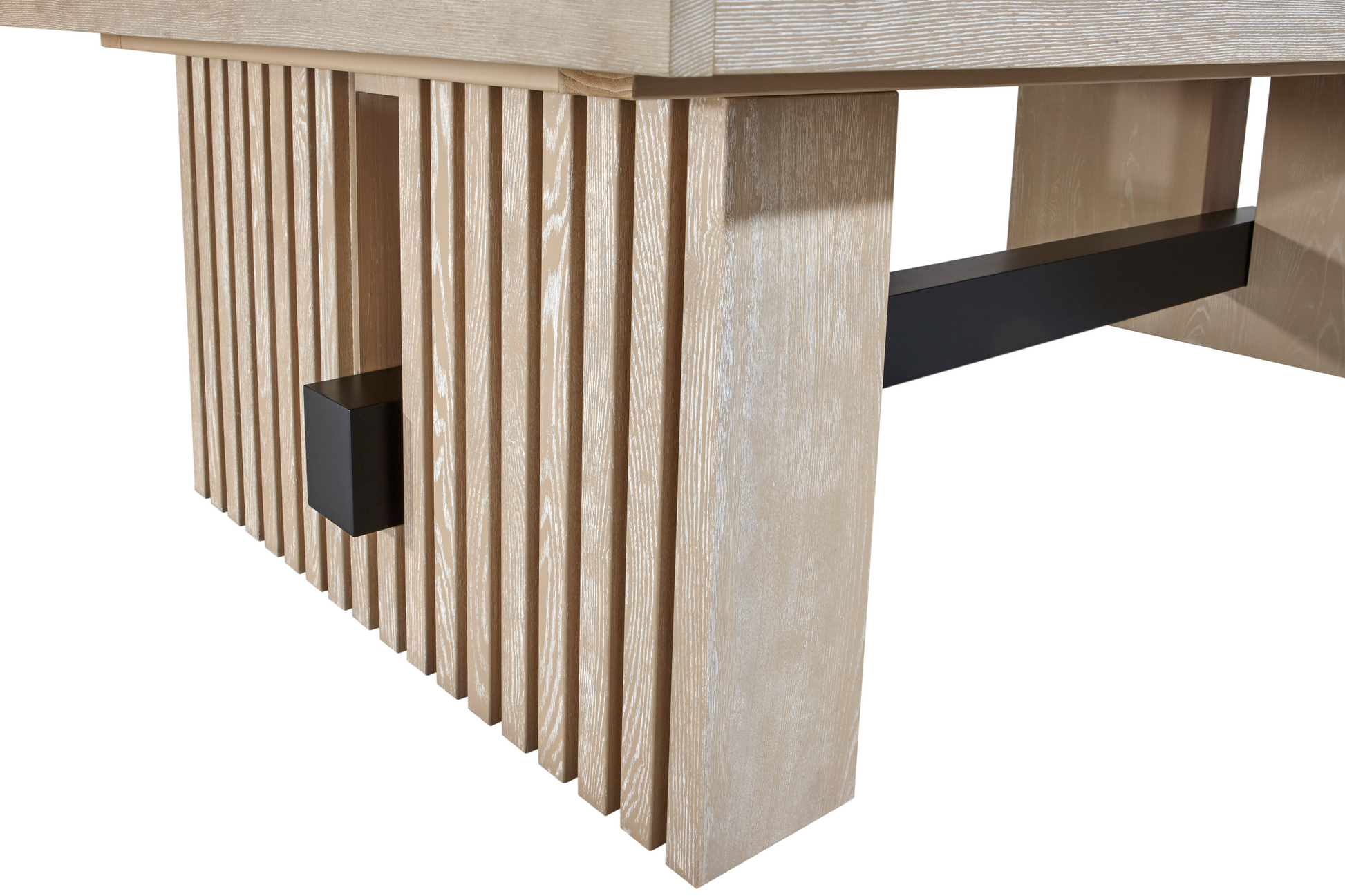 The Vancouver pool table features a modern mix of materials and textures highlighting its fresh and contemporary design. A wood batten-style base with a powder-coated metal beam completes the clean, organic aesthetic. Pair this billiard table with a dining conversion top for ultimate entertaining. This pool table features white pearlized diamond rail sights, robust construction, and internal drop pockets.