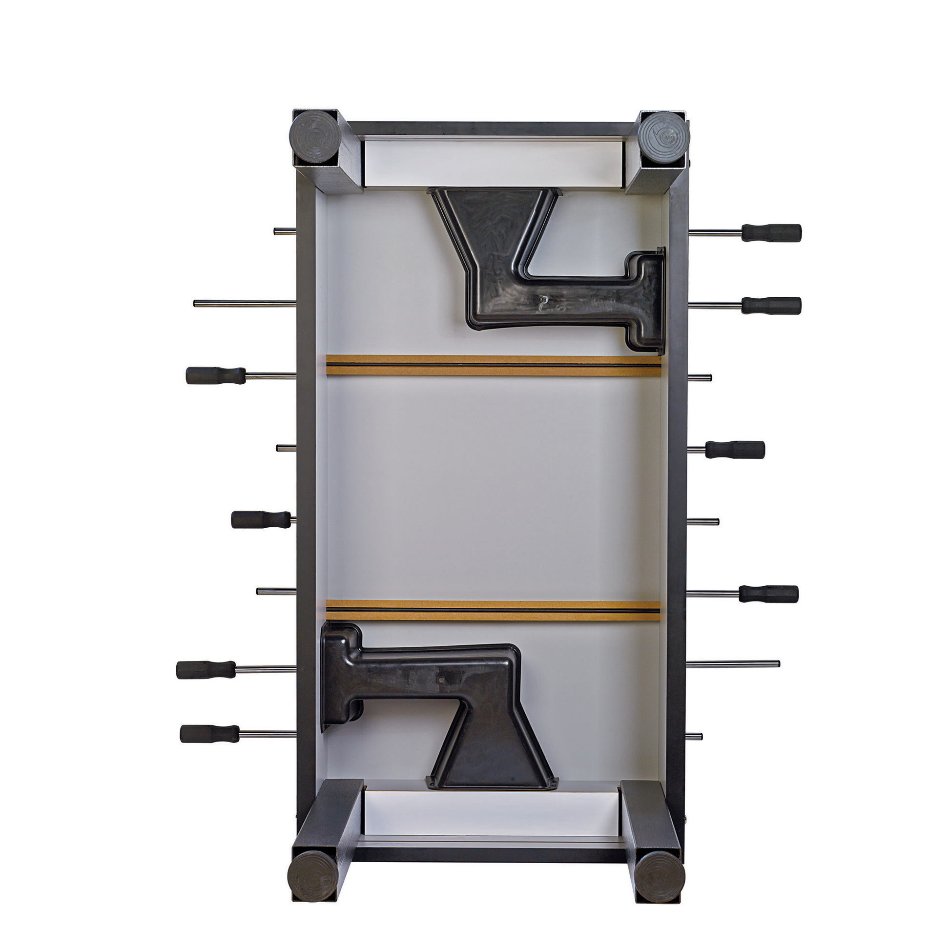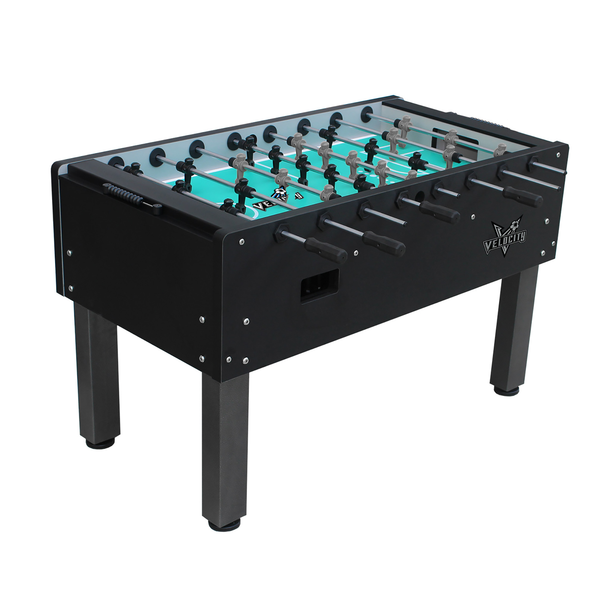 The HJ Scott VF5100 Foosball table is the perfect choice for years of fun for your family and friends. It’s high quality construction and sporty design will compliment any game room. This table features classic abacus style score keeping, and a side ball return system. Choose between our two player layout choices, 1 goalie or 3 goalie, to fit your exact needs